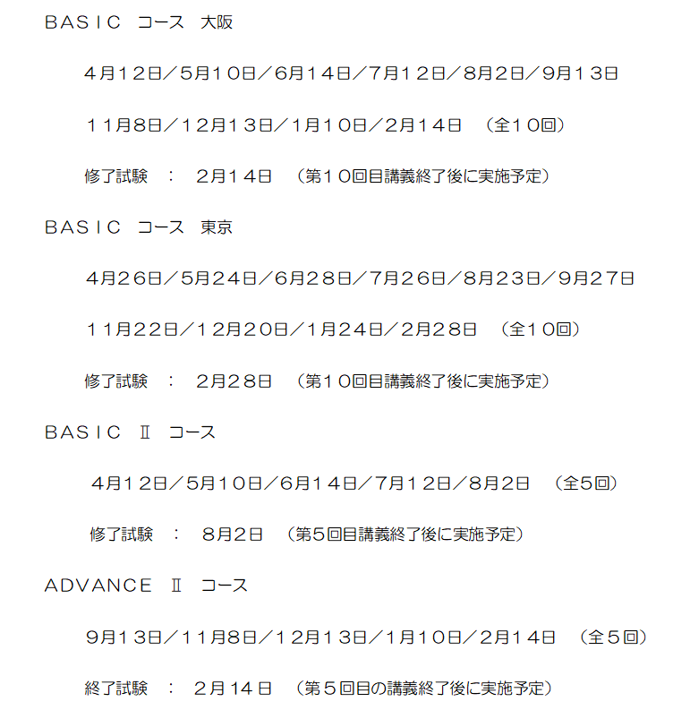 4.修了試験は全課程の受講後に行い、合格者には本会より修了証を授与する。